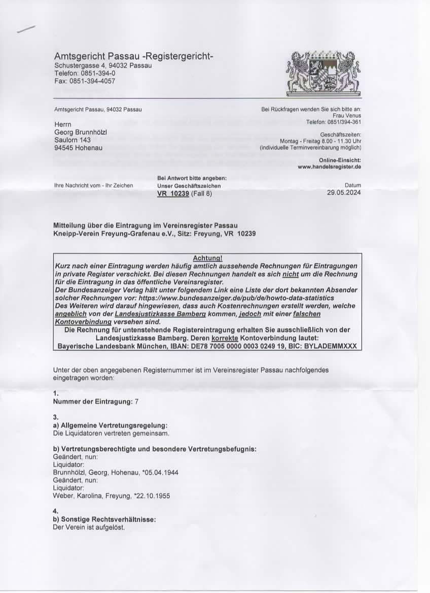 Siehe Schreiben Amtsgericht Passau vom 29. 05. 2024 |